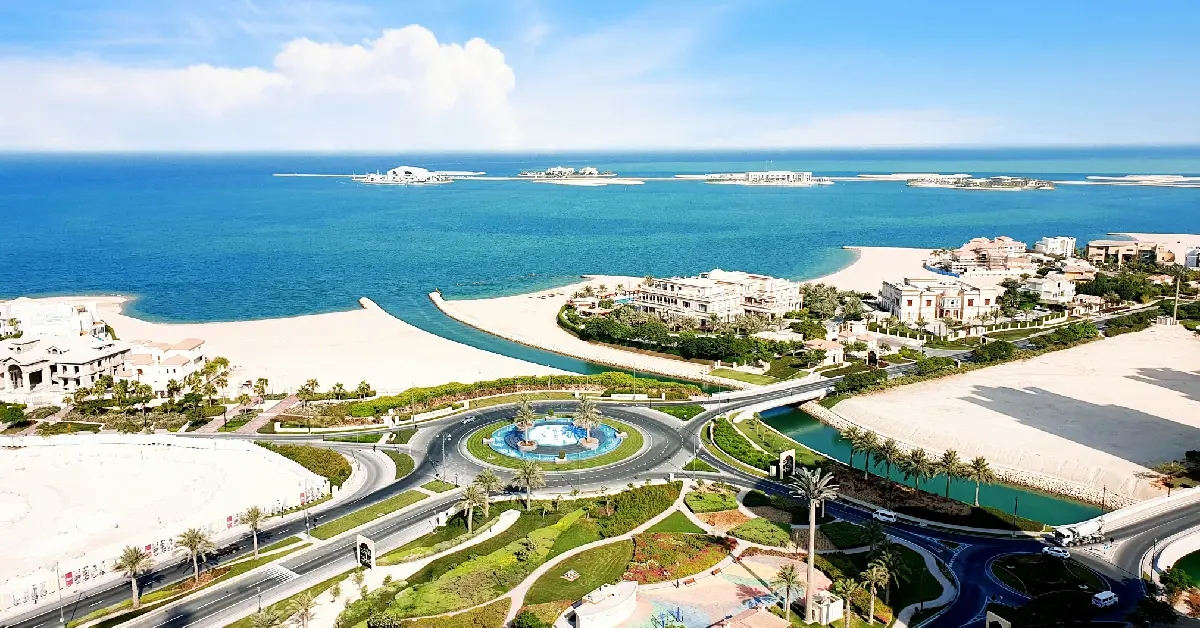 Luxury waterfront view of The Pearl-Qatar with yachts and promenade