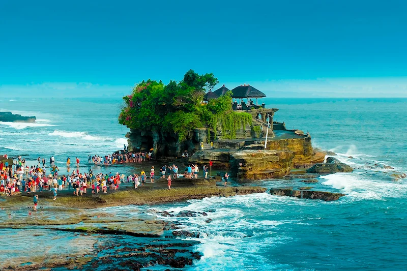 Tanah Lot is a famous Balinese temple perched on a rock formation along the sea. It’s especially popular for sunset views and photography. Visitors can explore the temple grounds and surrounding beaches. The temple is a significant cultural and spiritual site in Bali. A visit to Tanah Lot combines natural beauty, culture, and an unforgettable experience.